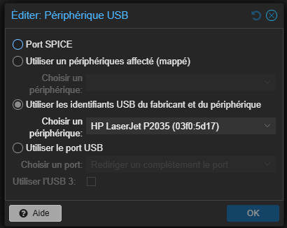 Je n’ai pas spécialement envie de placer ce bloc de plastique dans mon salon, mais il faut bien pouvoir s’y connecter pour imprimer… Alors direction le homelab : je la branche à mon serveur, et je fais un USB passthrough vers une nouvelle VM. Je choisis un Linux Mint.