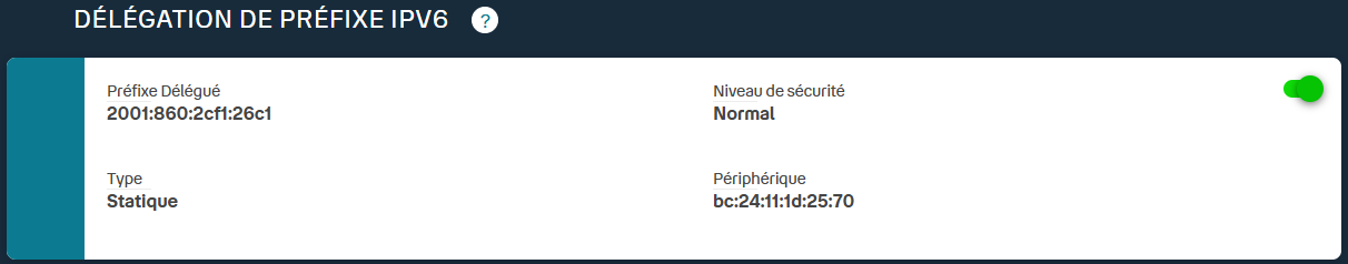 Passons à la pratique. Côté box, j’ai un menu Délégation de préfixe IPv6